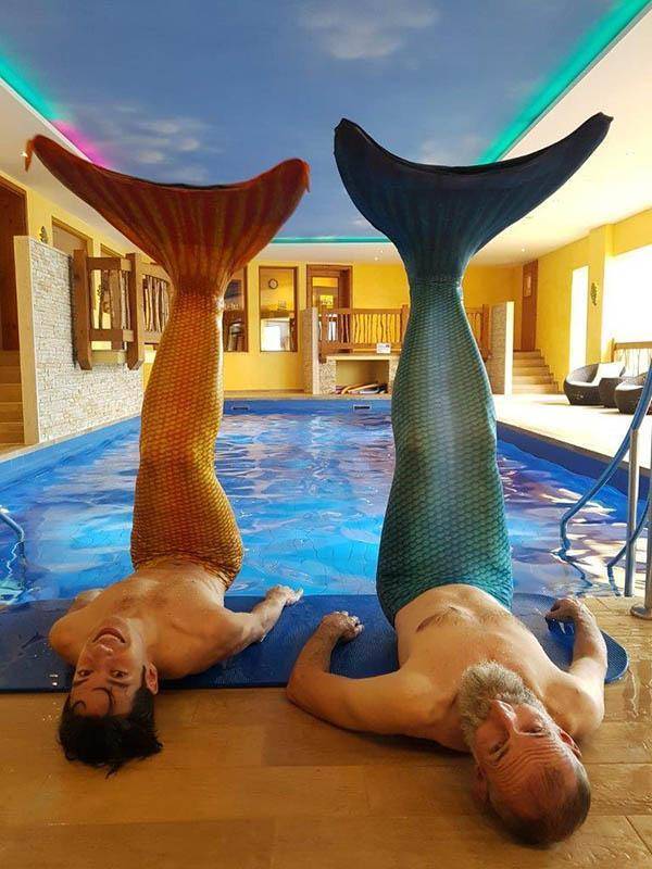 Mit Gabi Raddadi. In unserem Schwimmbad.